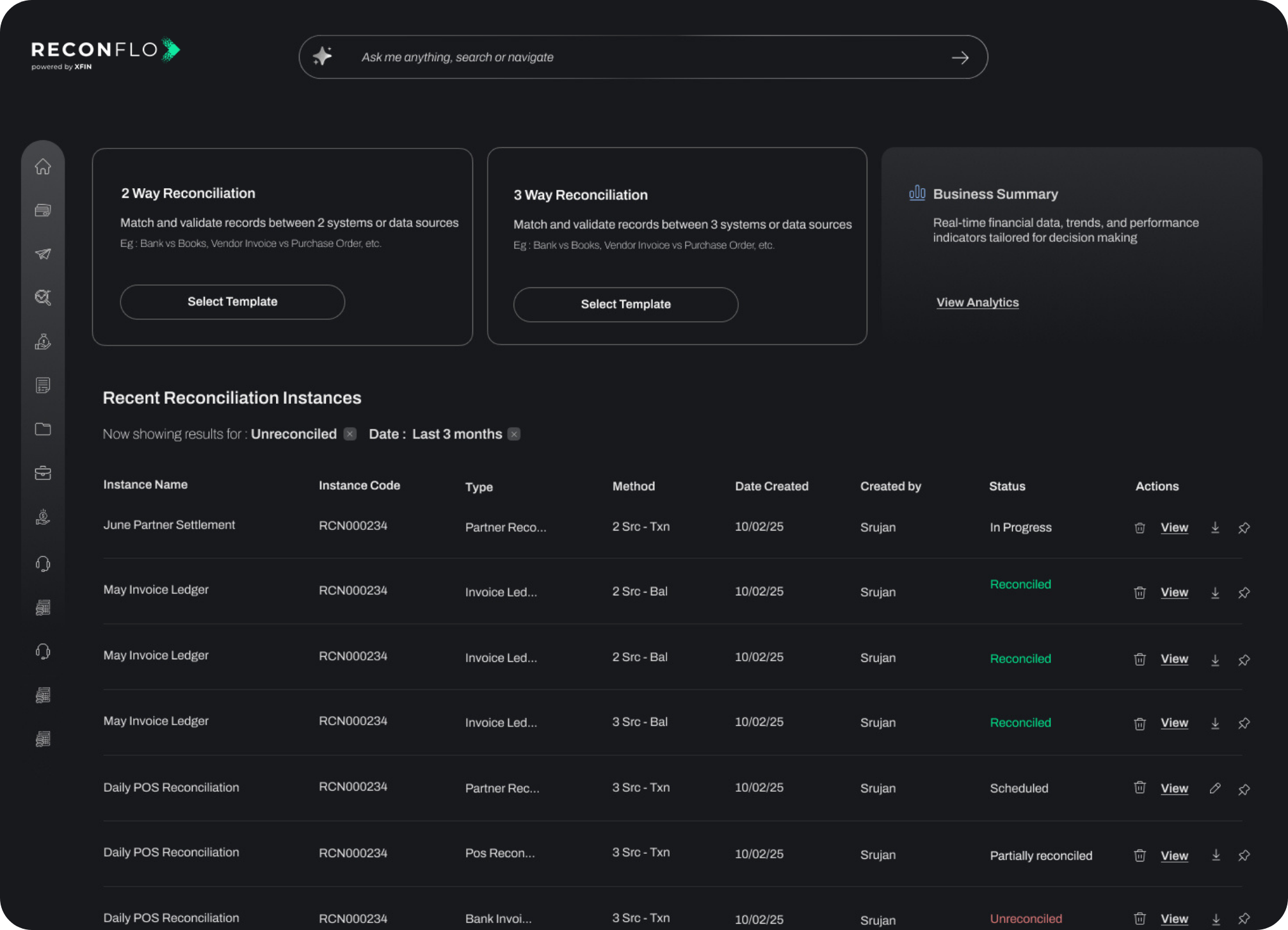 Free teams from spreadsheets, cut their work from days to minutes - even for millions of records, with AI that eliminates human error and reconciliation backlog.
